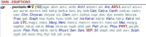 Φωτ. 8 Συντομογραφίες ομοιοπαθητικών φαρμάκων που ενδείκνυνται για την αντιμετώπιση της ψωρίασης.