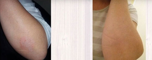 Φωτ 1. Περιοχή μπράτσου πριν και μετά την ομοιοπαθητική θεραπεία