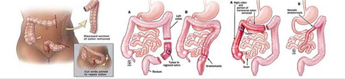 Η επέμβαση για την αφαίρεση του τμήματος του παχέος εντέρου που πάσχει από καρκίνο ονομάζεται κολεκτομή. Η συγκεκριμένη επέμβαση είναι δυνατόν να πραγματοποιηθεί λαπαροσκοπικά. Κατά τη διάρκεια της λαπαροσκοπικής κολεκτομής διανοίγονται 4 με 5 μικρές οπές περίπου ενός εκατοστού, μία από τις οποίες διευρύνεται προκειμένου να απομακρυνθεί το τμήμα του εντέρου που πάσχει.