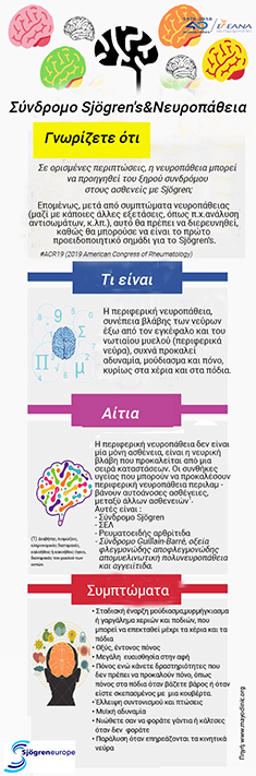 Tέλος, το Σύνδρομο Sjögren θεωρείται συχνά ως μια σπάνια ασθένεια, ωστόσο εκτιμάται ότι υπάρχουν χιλιάδες άνθρωποι που ζουν με αυτήν την ασθένεια, (περίπου το 1% του πληθυσμού) καθιστώντας τη νόσο μία από τις διαδεδομένες αυτοάνοσες ασθένειες. Δυστυχώς όμως υπάρχουν γι’ αυτό πολύ λιγότερες κλινικές μελέτες και ερευνητικό ενδιαφέρον, σε σύγκριση με άλλες σχετικές παθήσεις. Η ενεργός συμμετοχή των ασθενών, και η συνεργασία κλινικών ιατρών , ερευνητών και ασθενών είναι ζωτικής σημασίας για την εξεύρεση στο μέλλον πιθανής θεραπείας και την εκπλήρωση ανεκπλήρωτων αναγκών των ασθενών, τόνισε η κα Ευαγγελία Οικονομούλα, ασθενής με Sjögren, Μέλος Δ.Σ. και Υπεύθυνη Θεσσαλίας της Ελληνικής Εταιρείας Αντιρευματικού Αγώνα.